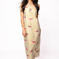 Step into festive fun with this Gold Metallic Stripe Christmas Cocktail Midi Dress. Featuring shimmering gold and white stripes paired with a playful pink martini design, it’s the perfect dress to sparkle at holiday parties. The midi length adds elegant flair while keeping the vibe lively and chic—ready for dancing or sipping your favorite cocktail in style.