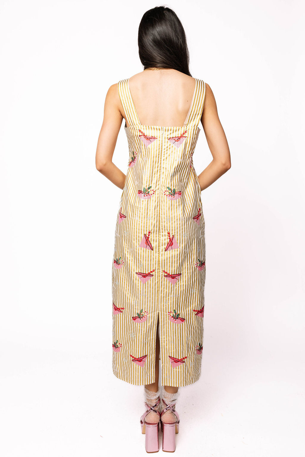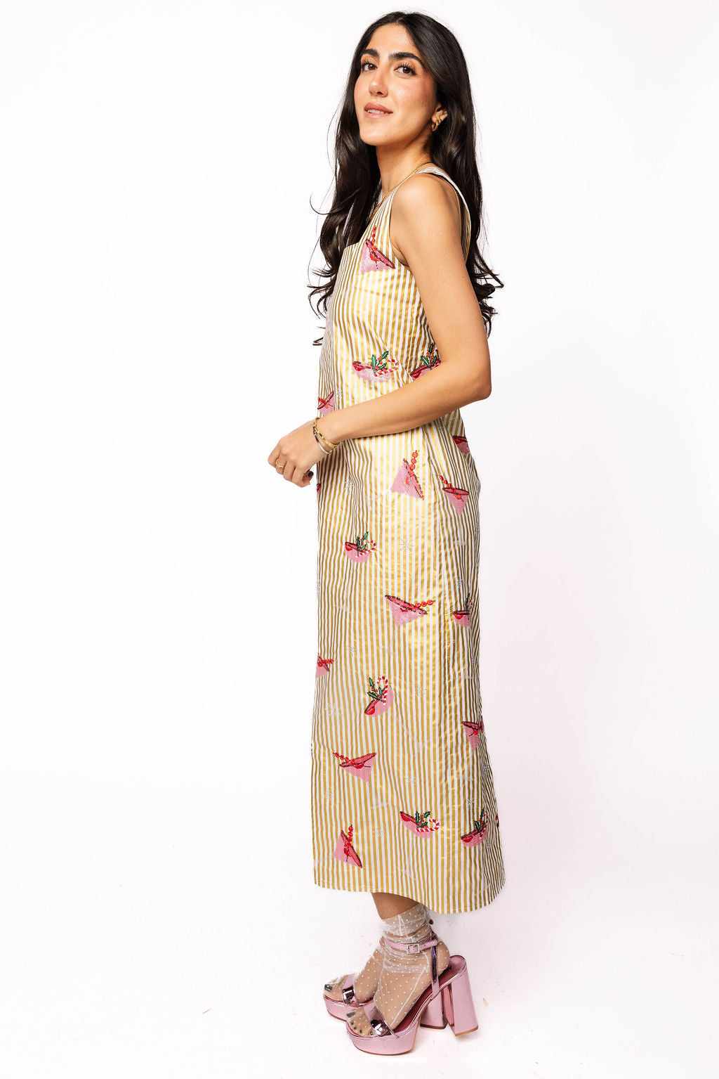 Gold Metallic Stripe Christmas Cocktail Midi Dress
