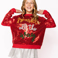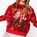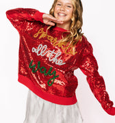 Kids Full Sequin Sparkle All the Way Red Sparkle Sweater