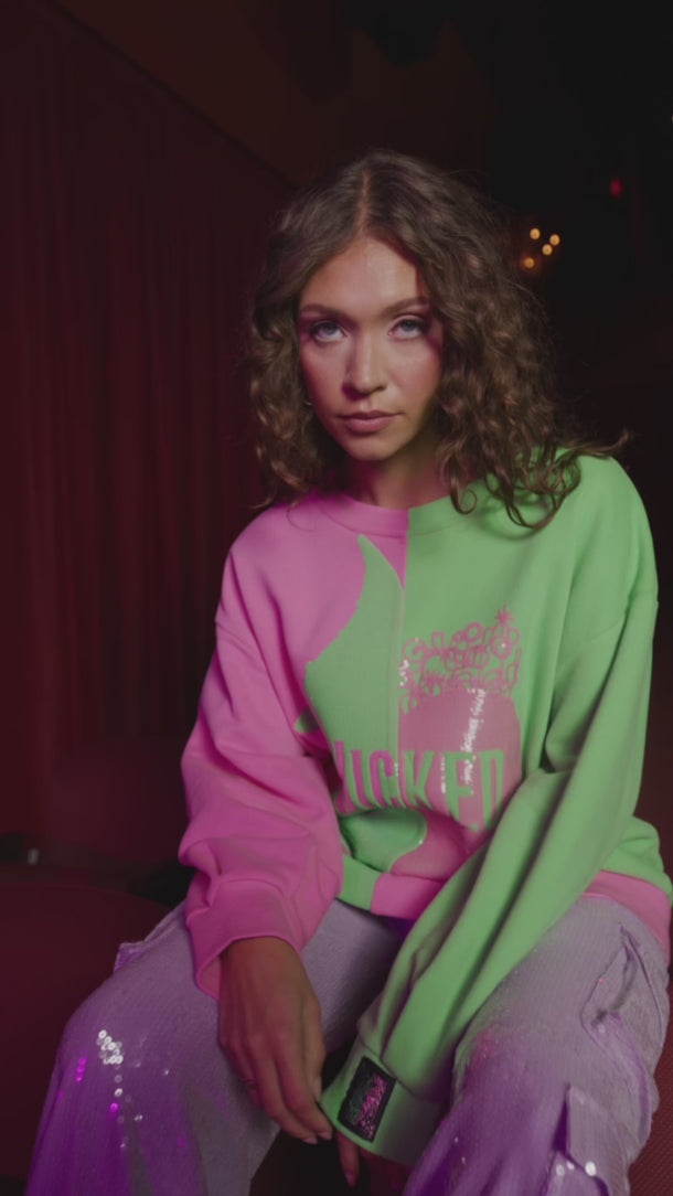 Licensed Green & Pink Colorblock Character Profile 'Wicked' Sweatshirt