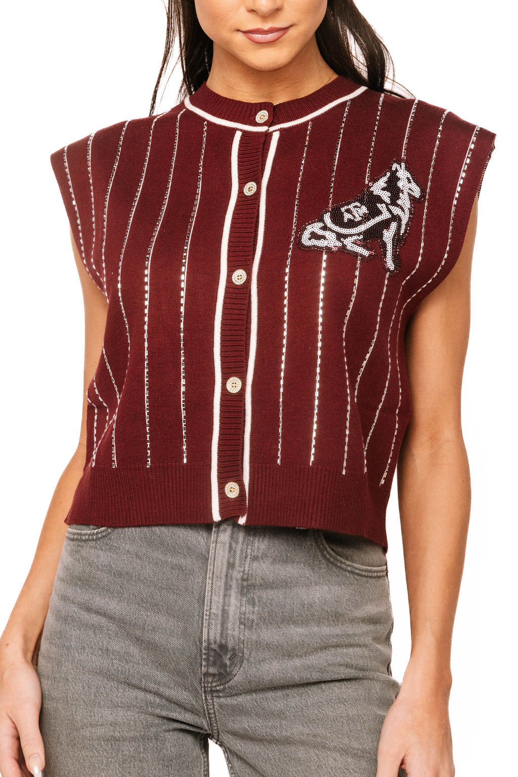 Licensed Texas A&M Striped Mascot Button Up Knit Vest