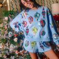 Light Blue Multi Color Ornaments Shorts