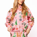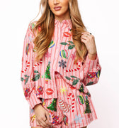 Light Pink & Red Stripe Christmas Icons Button Up Top
