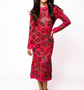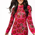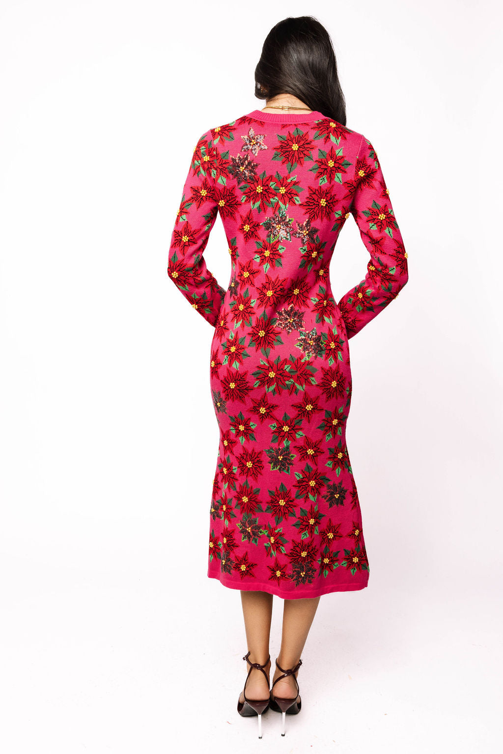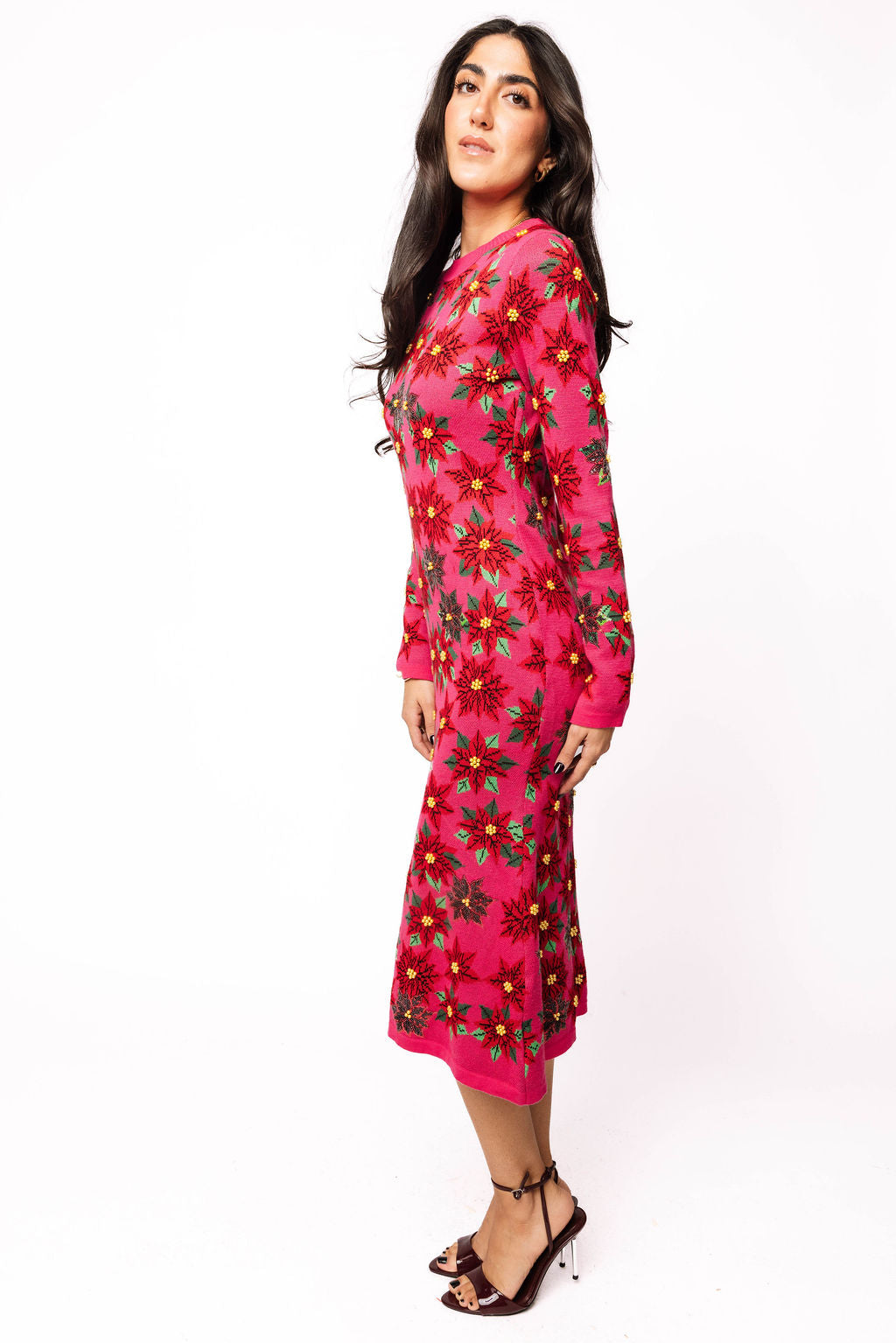 Turn heads this season in our Pink & Red Poinsettia Knit Midi Dress. Featuring a festive poinsettia pattern in cheerful red and pink tones, this cozy knit piece brings holiday joy with a playful twist. Its flattering midi length and comfortable fit make it perfect for parties, brunches, or festive strolls. Brighten your wardrobe with this charming dress that’s as fun to wear as it is to admire.