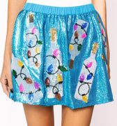 SAMPLE- Aqua Christmas Light Bottle Sequin Skort