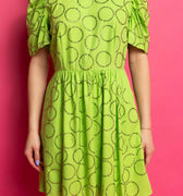 SAMPLE GREEN CIRCLE RHINESTONE POOF SLEEVE DRESS