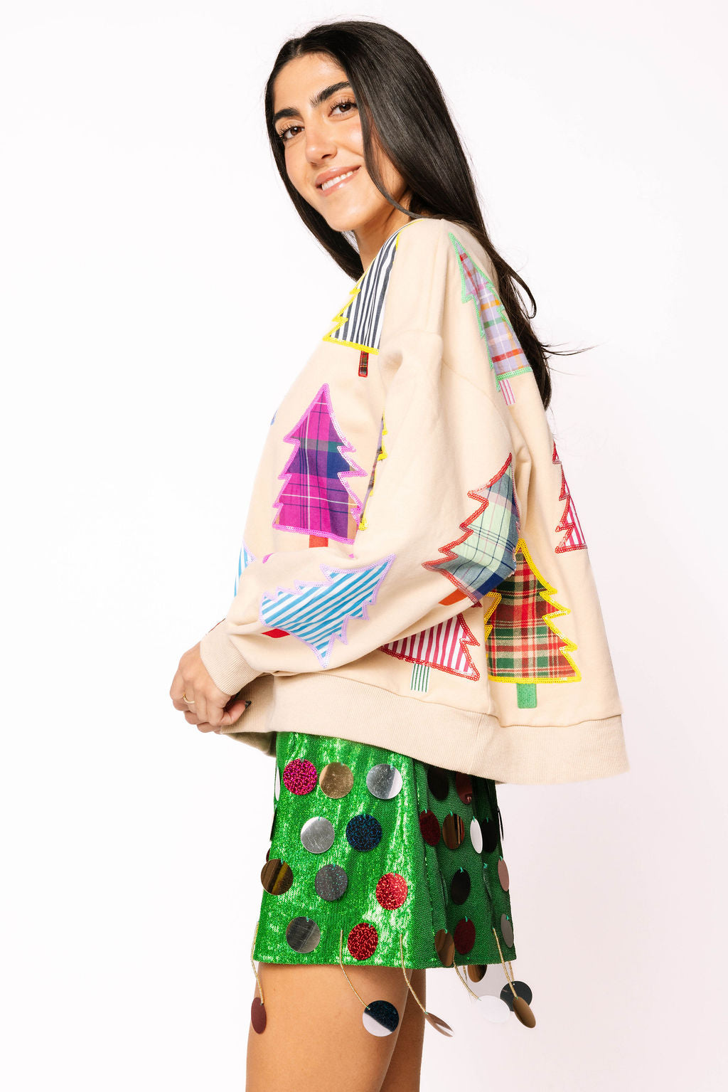 Beige Multi Plaid & Stripe Christmas Tree Sweatshirt